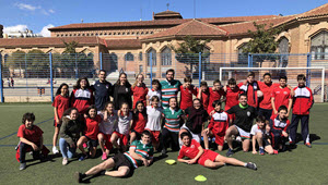 Los alumnos de 1º y 2º ESO han disfrutado de un clinic de rugby impartido por jugadores/as del Íbero Rugby Club de Zaragoza.